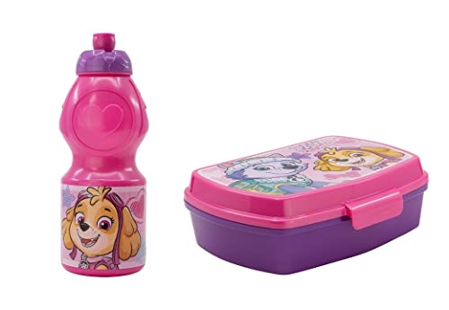 ALMACENESADAN, 4955, Pack tillbaka till cole Patrol hund flickor, skye, everest, paw patrol; bestående av 400ml sportflaska och flerfärgad rektangulär smörgåsmaskin, återanvändbara produkter, BPA-fria