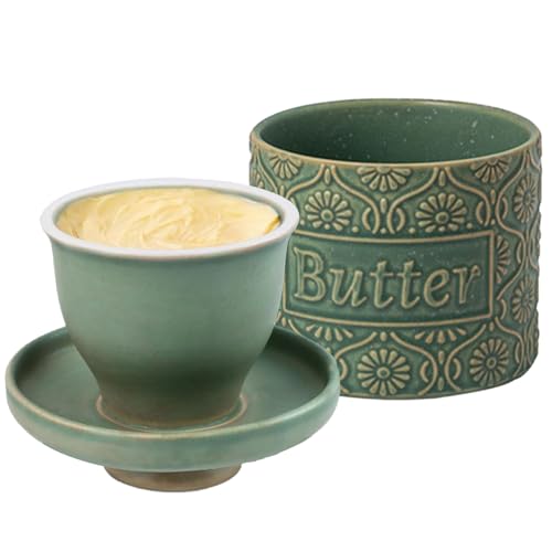 Fransk Keramisk Smörburk - Rund Porslins Smörklocka Vintage med Lock för Förvaring av Fräschör, Mjukt, Färdigsmör