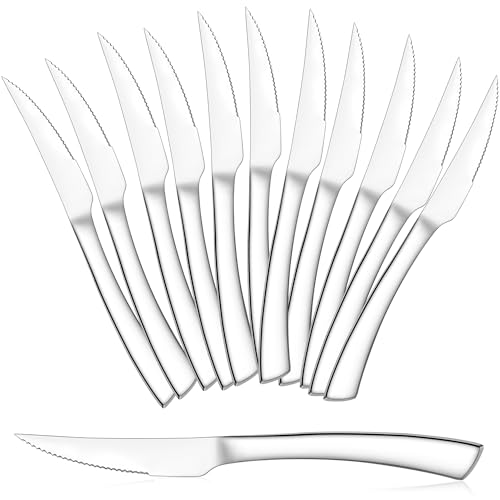 HaWare 12 stycken stekknivar i rostfritt stål, bordskniv, smörkniv, vass stekkniv, för hem, kök, restaurang, ergonomiskt handtag, spegelpolerad