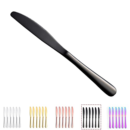 Kyraton Menykniv 6 delar, rostfritt stål 25 cm biffkniv, bordskniv, bestick, smörkniv, diskmaskinssäker (svart)