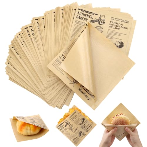 Hejo 200 st fettsäkra pappersblad, bakplåtspapper, oljesäkert slaktpapper, hamburgarpappersark, smörpapper, matomslagspapper, delipapper för hamburgare, pommes frites, smörgås (15 x 15 cm)