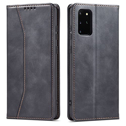 OKZone Fodral för Samsung Galaxy S20 Plus, Magnetiskt Stativfunktion Mobiltelefonfodral med Kortfack Och Ställ. Flip Läder Vikbart Fodral Skyddsfodral Kortplatser Fodral för Samsung S20 Plus (Svart)