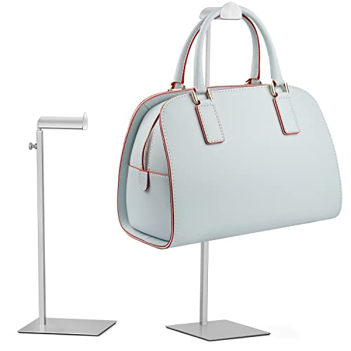 FNG8 Justerbart Handväskställ [2-Pack] - Multifunktionellt Handväskställ för Hattar, Smycken, Accessoarer - Hållare i Rostfritt Stål - Enkel Höjdjustering, Stabil Platt Bas - Glänsande Metallsilver