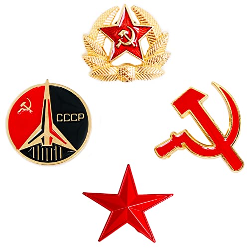 4 stycken broscher, nål stjärnsymbol, stjärna sikel & hammaremblem, för kläder väskor jackor smycken accessoarer, Metall