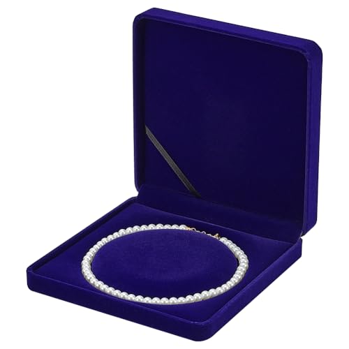 FINGERINSPIRE Sammet pärlhalsband förvaring presentförpackning 19 x 19 x 4,1 cm fyrkantig sammet smycken presentförpackning mörkblå halsband presentdisplay fodral bröllop smycken förvaringshållare för