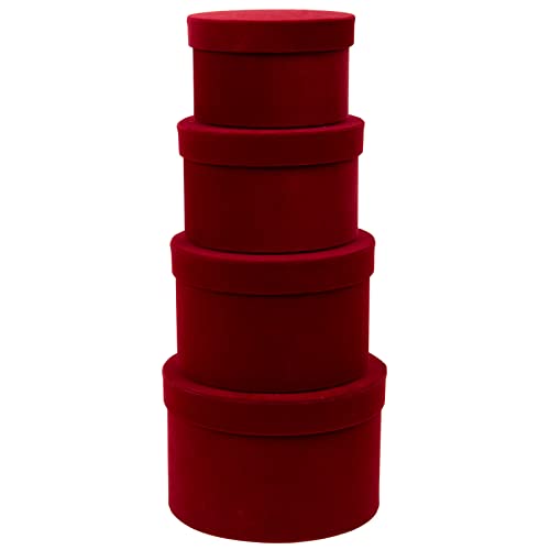 Presentlådor med lock, set med 4, svart presentask i sammet, blandade storlekar, stapelbara presentaskar för presenter, rund hattlåda för blommor, smycken, födelsedag, brudtärna, bröllop, röd