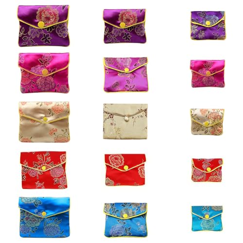NBEADS 15 st broderipåsar i silke, 3 storlekar, traditionell kinesisk brokad, smycken, presentförpackning för bröllop, presentförpackning