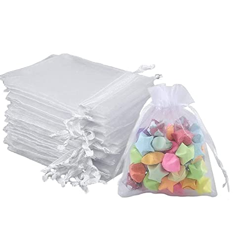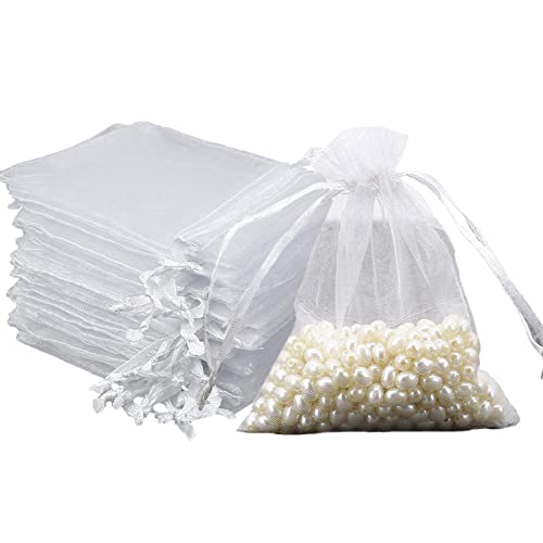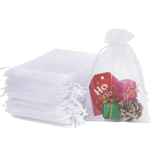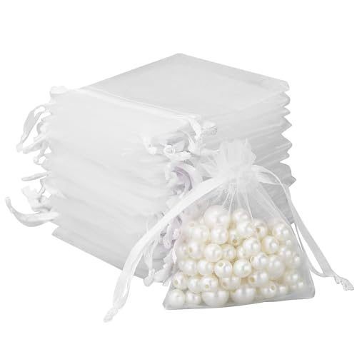 Intckwan 100 stycken vita organzapåsar, 7 x 9 cm, organzapåsar, presenter smycken, bröllop, godisväska för festival, fest och bröllop, satin-dragsko