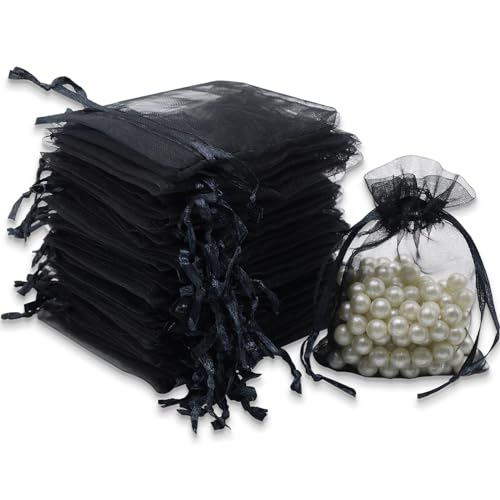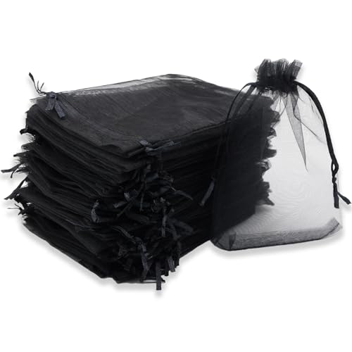 Leeyunbee 100 stycken svarta organzapåsar 10 x 15 cm organzapåsar, presenter smycken bröllop godisväska för festival fest och bröllop, satin-dragsko