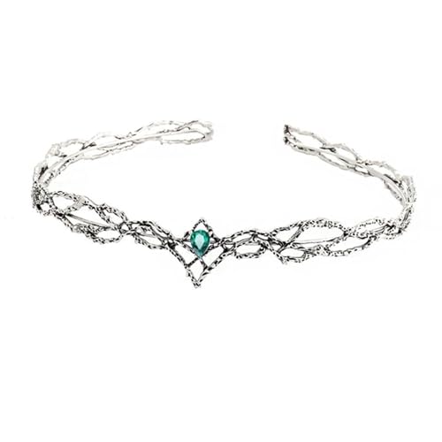 NEIMENG Älva huvudbonad alver krona tiara kvinnor vattendroppe zirkon pannband brud hårtillbehör gåvor smycken bröllop huvudbonader (silver grön)