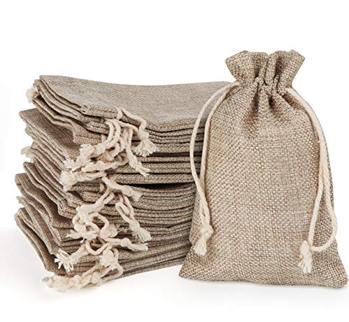 ilauke 30 st påsar i hampalinne, säckvävspåse med dragsko, återanvändbar linnepåse för bröllop, smycken, jul, gör-det-själv-fest (10 cm x 15 cm, naturlig färg)