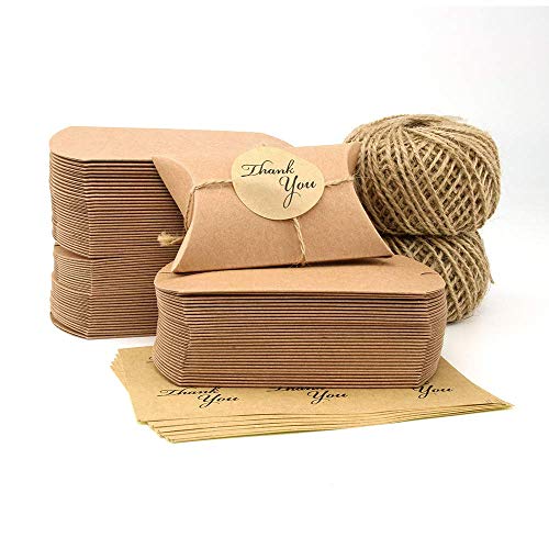 VEESUN 120 st små presentaskar med tackklistermärken, 6 x 9 cm bruna kuddlådor bröllop favoritlåda kraftpapper godis smycken låda, dekorationsartiklar för födelsedag bröllopsdag julfest