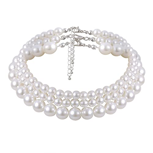 Liitata Simulerat pärlhalsband halsband 3-radig pärlkedja multitråd pärla choker kort pärlhalsband för kvinnor flickor party födelsedag bröllop smycken gåvor – 3 stycken