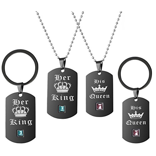 Uloveido Svart och guld hans drottning och hennes kung rostfritt stål halsband hänge och nyckelring kedja par smycken set för män och kvinnor SN129 e rostfritt stål, colore: svart, guld, cod. SN137-Black Keyring and Necklace