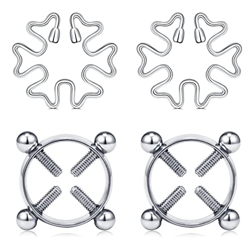 LAURITAMI 2 par falska bröstvårtsringar för kvinnor rostfritt stål icke-piercade blommor bröstvårta smycken, Rostfritt stål