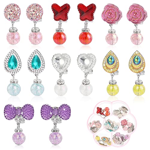 Grevosea 7 par clip-on-örhängen för flickor, flickor smycken utklädningsörhängen och prinsesslekörhängen set inga piercade smycken tillbehör för festgåvor födelsedag presentförpackad, metall + akryl