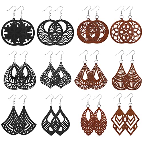 12 par träörhängen kvinnor afrikanska boho hängande örhängen lätta droppörhängen smycken naturligt trä örhängen hängande för kvinnor flickor, ohrringe holz, Trä, Ingen ädelsten