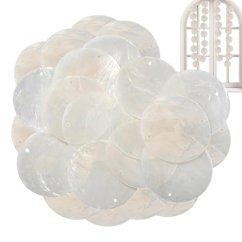 Poludatly 100 st runda skal, capiz-snäckor med 2 hål, natur platta snäckpärlor, havsmynt droppe Cha-rms, D-IY hav för vindklockor dörrgardin, smycken
