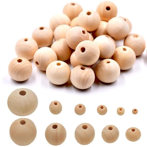 TOAOB Träpärlor för trädning med förvaringslåda, 160 stycken träkulor med hål 6 till 14 mm, runda träpärlor, natur, träkulor för pyssel, gör-det-själv smycken, armband, halsband
