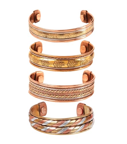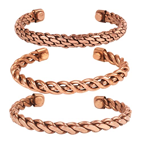 Touchstone Indisk handgjord magnet koppararmband chakra smycken manschett present kvinnor män. Set med 3, Koppar Mässing
