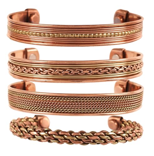 Touchstone Indisk handgjord magnet koppararmband chakra smycken manschett present kvinnor män. Set med 3, Koppar