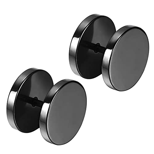 Flongo Örhängen för män, rostfritt stål, örhängen, runda, breda, 4-14 mm, fantasi, smycken, present, färg svart, Rostfritt stål, ingen sten