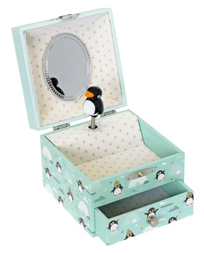 TROUSSELIER Penguin - skattlåda och musikaliska smycken - idealisk present till barn - fosforescerande - lyser på natten - Mozarts lilla nattmusik - grön färg
