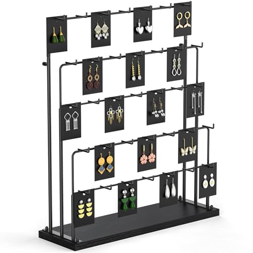 THYGIFTREE Smyckesdisplay för säljare med 35 krokar, 5 nivåer örhängesdisplayställ för att sälja, halsband örhängeskort för försäljning av armband, smycketorn (svart)