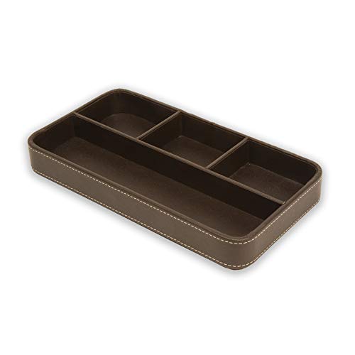 OSCO Lådförvaring av brunt konstläder | valetbricka | lådavskiljare | smyckesdisplay | skrivmaterialförvaring | H 3,5 x B 30 x D 16 cm |