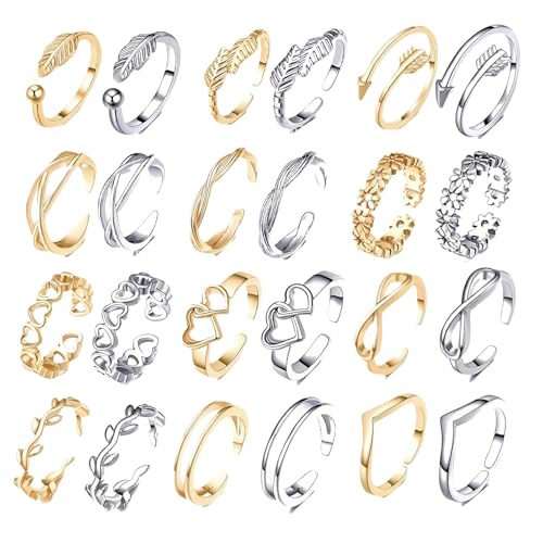 oooaooo 24 stycken tåring silver dam guldset, tåring guld fotring öppna fotringar zehring tåringar dam silver tåringar justerbar tå ring smyckeset