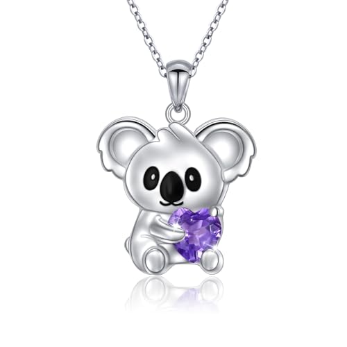 Flyow Koala smyckeset 925 sterling silver koalabjörn örhängen och halsband söta djur koala håll hjärta violett kubisk zirkonia smycken koala gåvor för kvinnor flickor, Sterlingsilver, Kubisk zirkonia