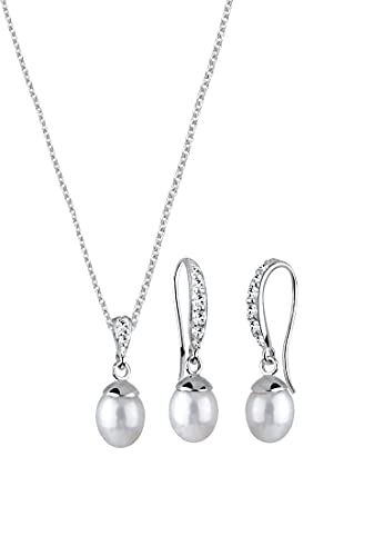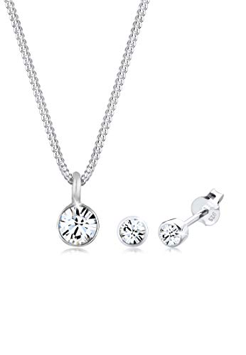 Elli Kvinnor 925 Silver Rund Kristall Smyckeset, Sterlingsilver Silver, Kristall