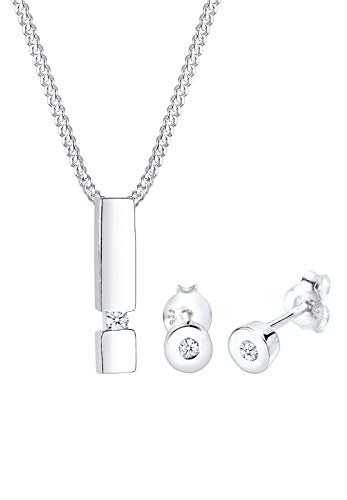Elli DIAMONDS Smyckeset Smycken Dam, Örhängen Geo Hänge Solitaire med Diamant (0,09 ct.) i 925 Sterlingsilver, 450