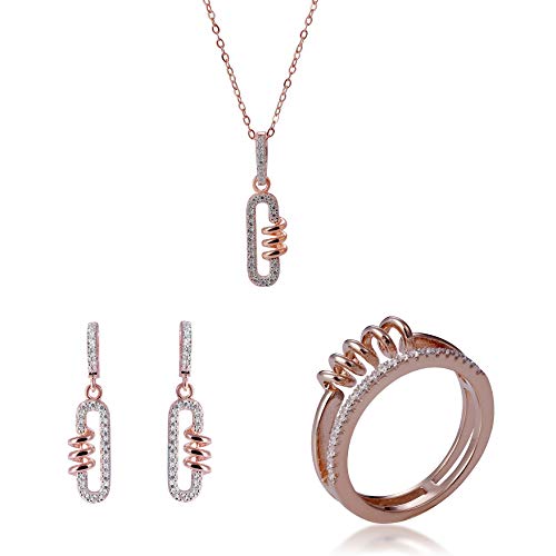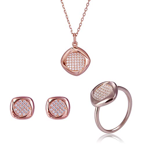 FDEETY smyckeset dam silver, 925 sterling silver berlock halskedja ring och örhängen set vit zirkonia kristall smyckeset gåvor för bröllop förlovning, Legerat stål, Kubisk zirkonia