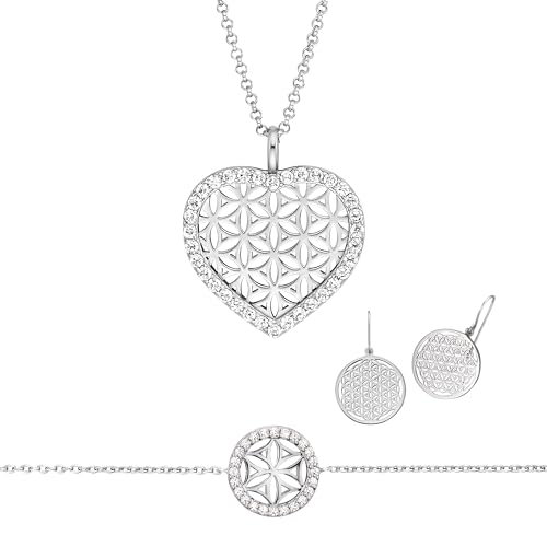 ängelsrufer smyckeset dam – armband & örhängen hjärta livets blomma – med vit zirkonia – elegant modesmycke, 17 + 3 cm, Sterlingsilver, Ingen ädelsten