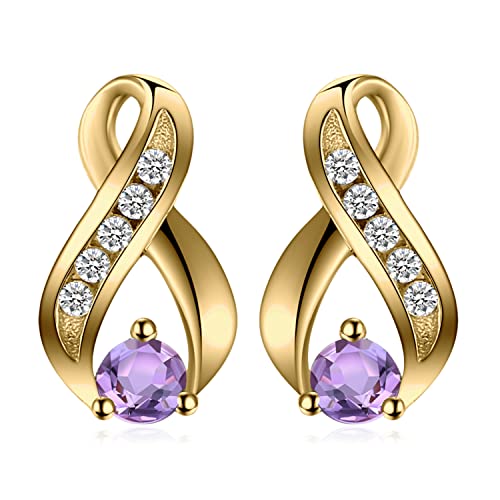 JewelryPalace Runda äkta Ametist Stiftörhängen Silver 925 Kvinnor, Örhängen Silverörhängen För Flickor, Stiftörhängen Silver Zirconia Ädelsten Liten, Smyckeset Lila Kvinnor Guldpläterade