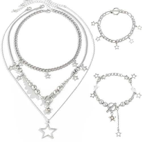3 st Y2k Vintage Silver Stjärna Smycken - Halsband Smyckeset Grunge för Jul och Nyår - Gåva för Kvinnor, 35-50 cm/13,7-19,68 inch