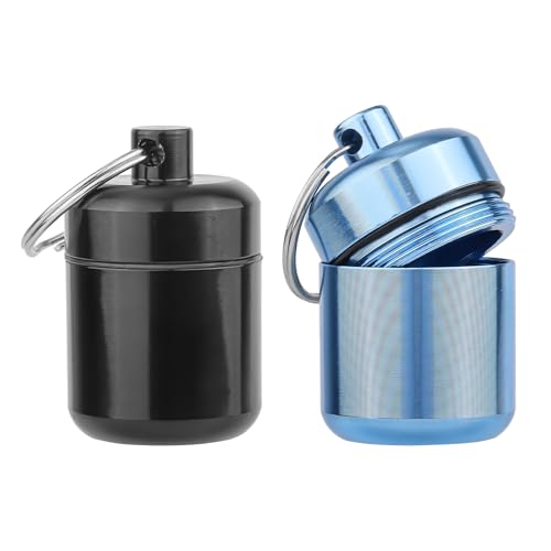 2 St Öronproppsbärväska Nyckelring, 4,15 x 2,65 cm Bärbar Öronproppshållare Vattentät Öronproppsfodral i Metall Öronproppar Smyckeshållare för Resor Utomhusaktiviteter (Svart, Ljusblå)