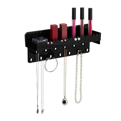 Relaxdays Smyckeshållare vägg, för kedjor, örhängen och armband, kedjehållare med hylla, H x B x D: 12 x 30 x 8 cm, svart