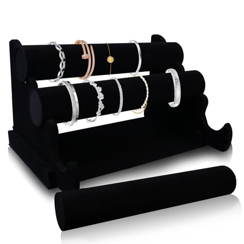 Smyckesställ armband, armbandsstativ i sammet med avtagbara 3 våningar, armring, utställningsstativ, armbandsstativ, klockstativhållare, smyckeshållare för klockor, armband, halsband (svart)