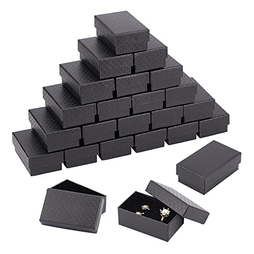 BENECREAT 24-pack diamantmönster kartong smyckeskrin 8 x 5 x 3 cm rektangel ring örhänge halsband presentlådor med svampinsats för årsdagar, bröllop, födelsedagar, svart
