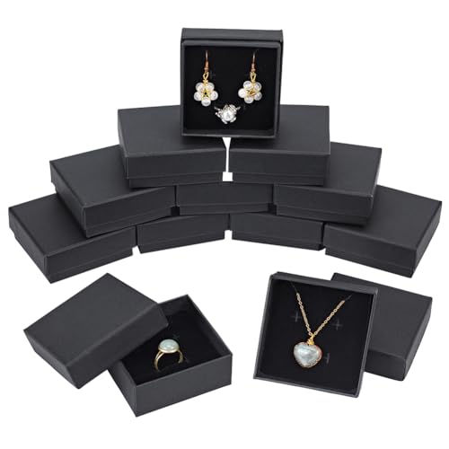 BENECREAT 12-pack 7,3 x 7,3 x 3 cm svarta halsband, ringlådor, fyrkantig, svart kartong, smyckeskrin, liten presentask med mjukt sammetsfoder för fest, festivaler, bröllop