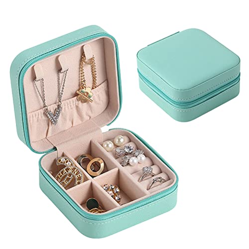 Smyckeskrin Organizer, Resesmyckeskrin Små smycken Organizer PU Läder Smycken Resefodral för kvinnor och flickor Ringar Örhängen Halsband och armband (blå)