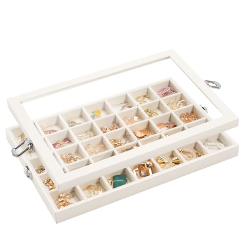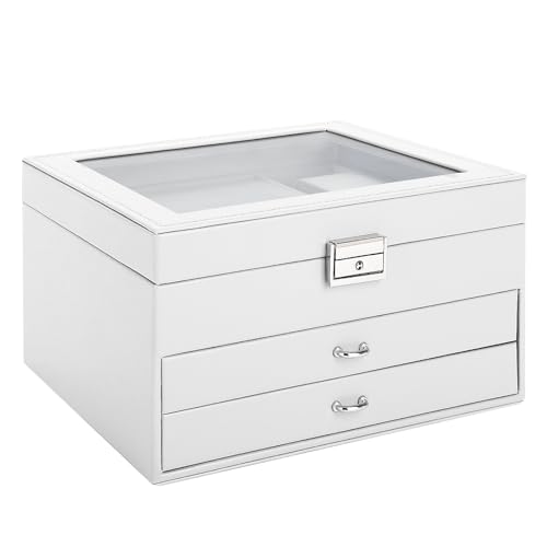 Yieseang Smyckeslåda med 2 Lådor och Glaslock - Smyckeskrin för Örhängen, Ringar - Smyckesorganisatör för Flickor och Kvinnor, Vit