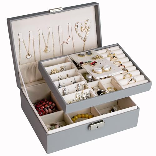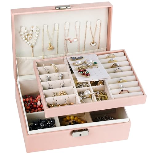 Vlando Smyckeskrin för flickor, kvinnor, dubbla lager smyckeslåda, låsbart smyckeskrin, smyckeskrin för ringar örhängen armband halsband, smyckesfodral