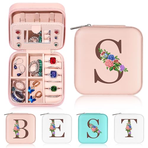 Yesteel Födelsedagsgåvor för kvinnor vän syster, litet resefodral smyckeskrin smyckeskrin, smyckesorganisatör, ringhalsband, örhängen, smyckeshållare, organiseringsbox med spegelbokstav S