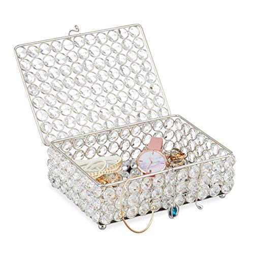 Relaxdays smyckeskrin, glamorös kristalldesign, organiserare för örhängen, halsband, klockor, speglad botten, silver, glas, metall, 1-pack