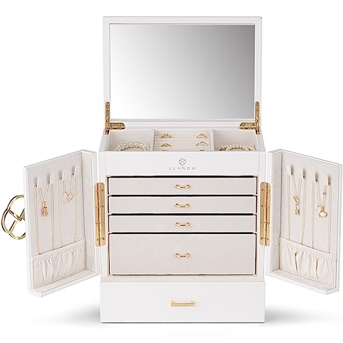 Vlando Stort smyckeskrin i 6 nivåer, smyckesorganisatör stor XXL med spegel, lådor, smyckesförvaring för kvinnor, smyckeskrin för örhängen, kedjor, klockor