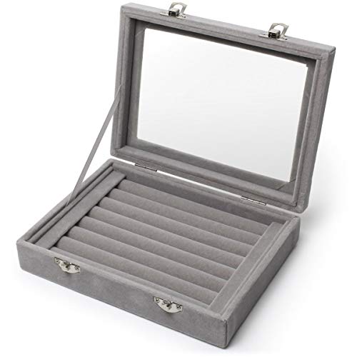 LANTWOO Sammet glas smyckesvisning förvaringsbox ring örhängen smyckeskrin ringhållare fodral, 2 spännen