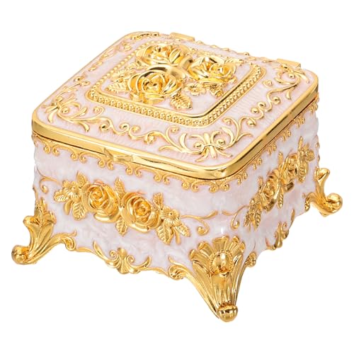 PATIKIL Vintage smyckeskrin i metall, fyrkantig prydnadssak organiseringsbox smycken förvaringsbox för ringörhängen halsband, toalettbord, bröllop födelsedagspresent heminredning, kvinnor flickor, vit